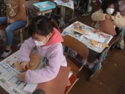 図工の学習では,紙版画に挑戦しています。