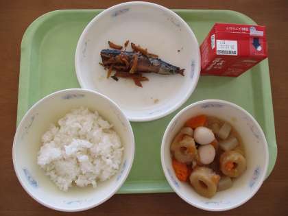12月4日(金)の献立は,ごはん(京北米),牛乳,いわしのかわり煮,関東煮でした。