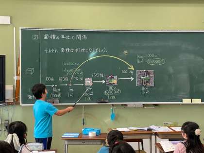 1平方センチメートル→1平方メートル→1アール→1ヘクタール→1平方キロメートル