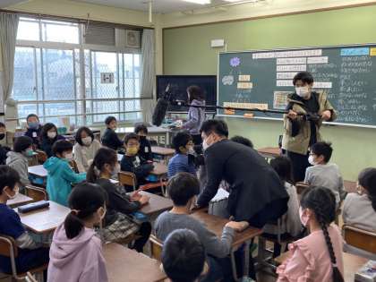 学活で新型コロナウイルスについての学習をしました。学習の様子をテレビ局の方が撮影しに来られました。子どもたちは少し緊張する中でも,素直な意見を発表することができました。