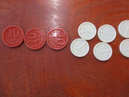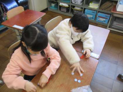 お金の模型を手に取り,お買い物に行った気分になっている子ども達。