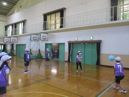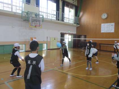 体育科「ソフトバレーボール」の学習をしています。今日はラリーをしました。