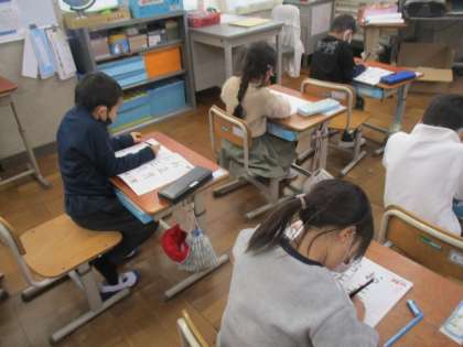 ちょっと緊張しながらも,集中して,よい姿勢で書いていました。