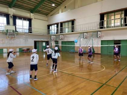 今ある子どもたちの力でバレーボールを楽しめるように,ルールを作っていき,みんなで盛り上げながら楽しんでいます。