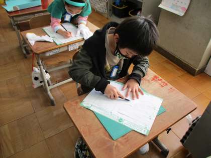 曲がる線などは,切るのが難しいですが集中して取り組んでいました。