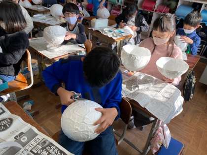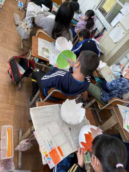 カチカチに固まった卵型をはさみで切って,卵が割れたようにしました。