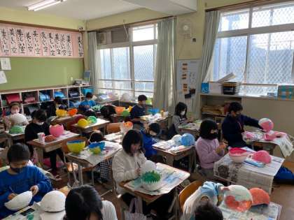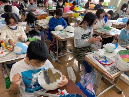 綿やモール,紙粘土,リボンなど,身近な材料を用いてYUMEの世界を創っていきました。