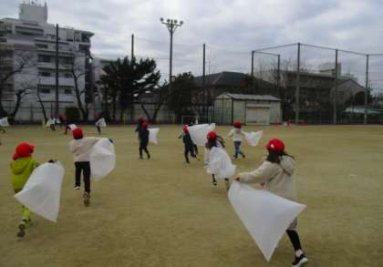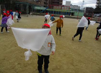 ふゆとともだちの学習で,校庭のかぜをつかまえにいきました!