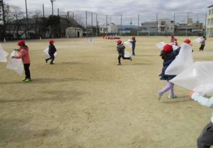 ビニール袋を手にすると,大はしゃぎの子どもたち♪