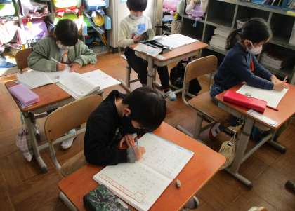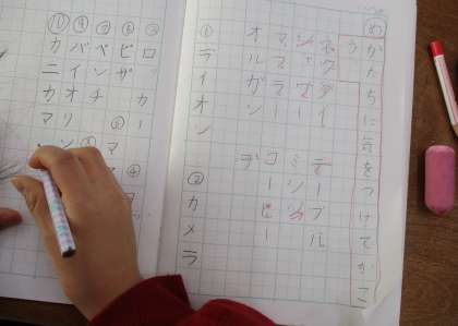 「“シ”は3画目が下から,“ツ”は上からだったね。」と,