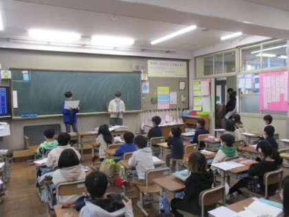 高学年のお兄さん・お姉さんが,代表委員会やそれぞれの委員会で決まったことや,連絡などを伝えにきてくれました。