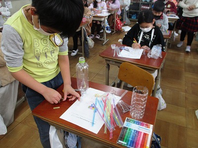 空き容器を使って,自分だけの,世界に1つだけの「アニマル」を作りました。ライオン・キリン・ウサギ・猫・犬・ハムスター等,たくさんのアニマルができました。