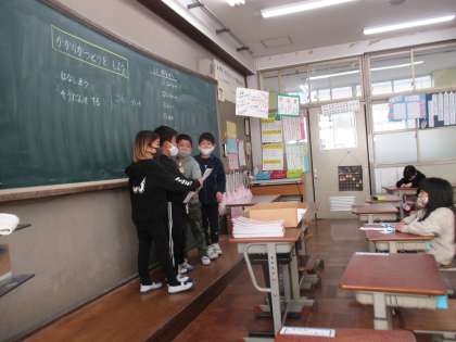 係の友だちとクイズを考えて出し合ったり,今企画していることを伝えたりと,自分たちでアイディアを出し合って楽しく進めています。