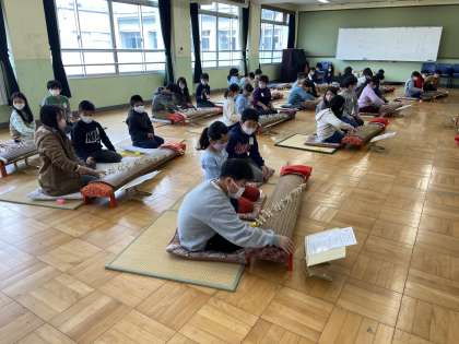 音楽の学習でお琴の体験をしました。みんなとても綺麗な音色を奏でていました。