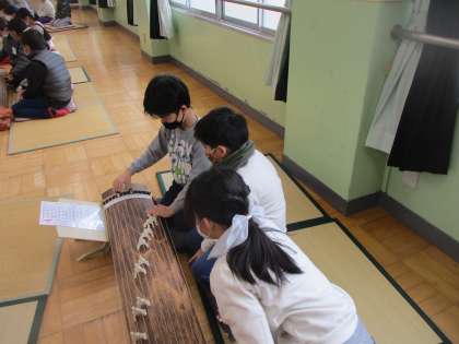 初めてのお琴に苦戦しながらも,弾いて音がなるだけで楽しいようでした。
