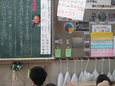 本文を読み込んだ後,感想を書きました。自分の書いた「初発の感想」と比べて読んだり,友達が書いた感想と比べて読みました。