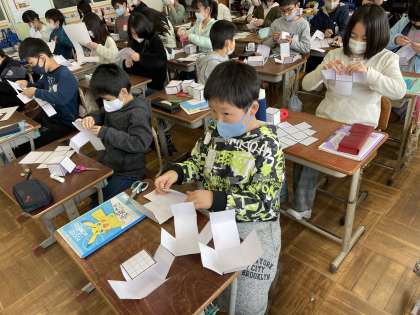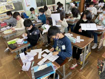 算数「直方体と立方体」の学習に入りました。展開図を切って立体の箱を作りました!覚えることがたくさんありますが…頑張ろう!