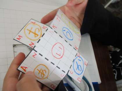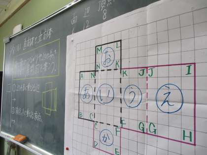 直方体の展開図をかいて組み立てました。面・辺・頂点の数は覚えましたか?
