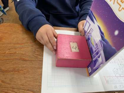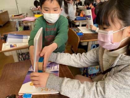 直方体の面や辺にノートや鉛筆を当ててみて,その関係を調べました。