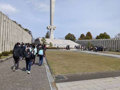 6年 修学旅行1日目 「太平洋戦全国戦災都市空爆死没者慰霊塔 見学」