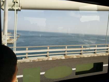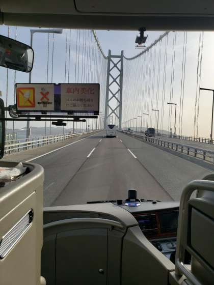姫路城の見学を終え,宿舎に向けてバスで移動します。明石海峡大橋を通って,いよいよ淡路島に上陸です。