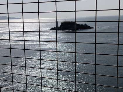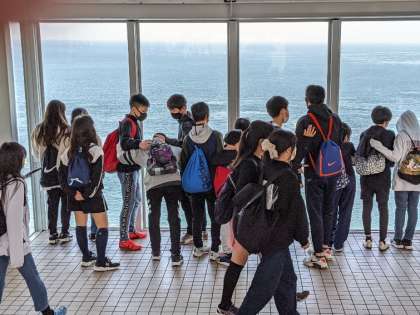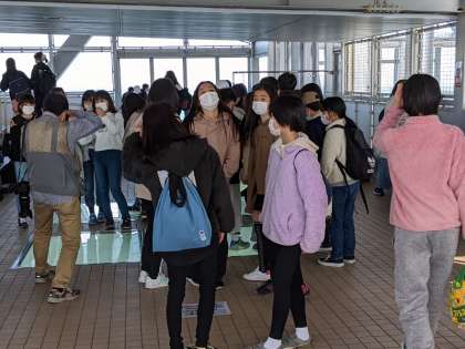 渦の道に到着しました。ガラス張りの通路を,ドキドキしながら歩いています。