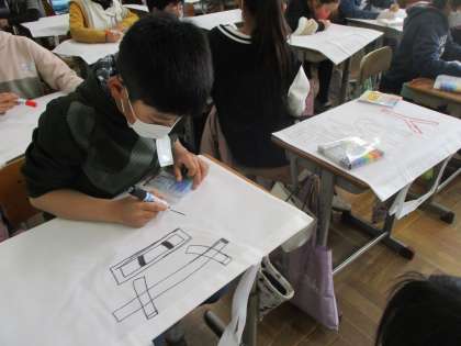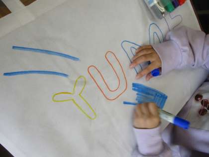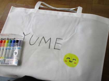思い思いに作品バックに絵や字を描きました。「YUME」の文字がたくさんでした。