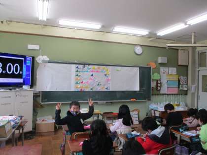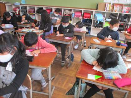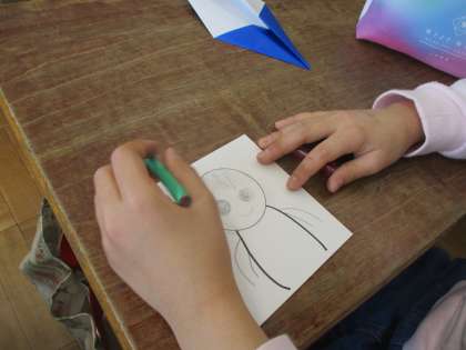卒業式に向けて6年生へお祝いの気持ちを,紙飛行機に自分を乗せて伝えます。