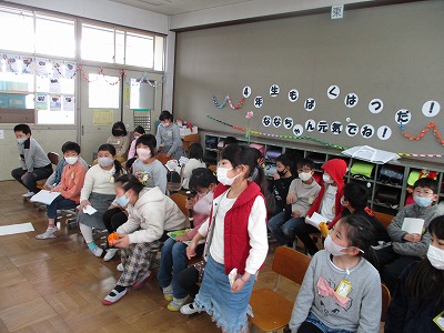 みんなからの出し物がたくさんあって,楽しめましたね・・・・・。ペープサートの劇や合奏・合唱,ゲームやクイズなど・・・・・。時間が足りないくらいでした。