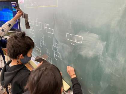 見つけた展開図を黒板に書きにきてもらいました。