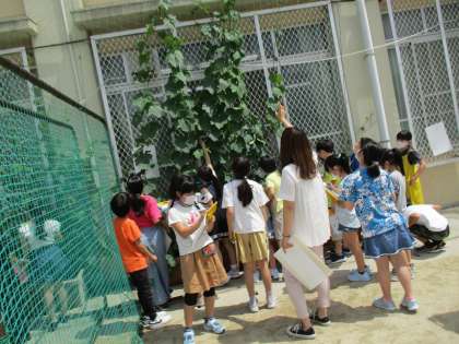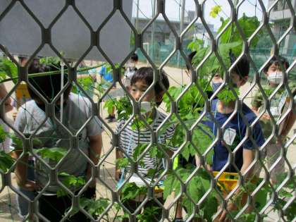 理科の学習で,ツルレイシとへちまを育てました。夏には大きな実になり,秋には大きな種になりました。ツルレイシやへちまと同じようにみんなもすくすく成長しましたね。
