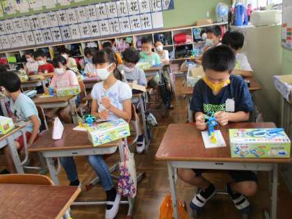 理科「電池のはたらき」の学習で,モーターカーを作り,みんなでレースをしました!モーターカーを作るのはとても難しそうでしたが,子どもたちはスラスラと作っていき,感心したことを覚えています…とても楽しく学習できましたね。