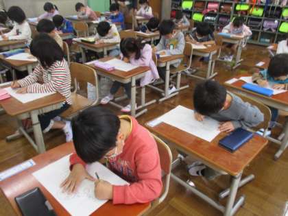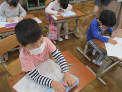 国語で「鉛筆の持ち方」の学習をしました。上手に持って,線をなぞりました(^▽^)/