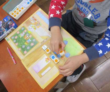 算数の学習で,数図ブロックを使いました。数図ブロックを置いて数を調べると,どちらが多いか分かりやすいね!!