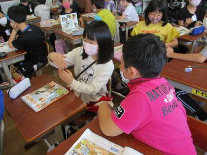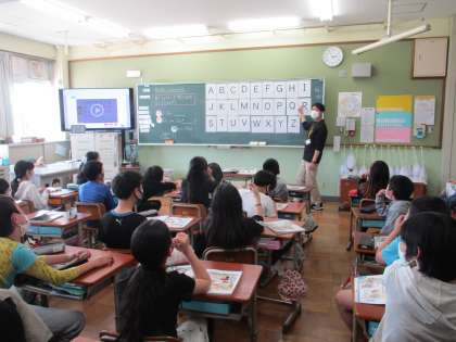 手で作ったアルファベットを当てるクイズをしたり,隣の人やグループの人と順番にアルファベットを言っていったりと,楽しく学習できました。