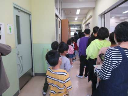 1年生のPCを6年生が持って竹の子ホールに移動しました。