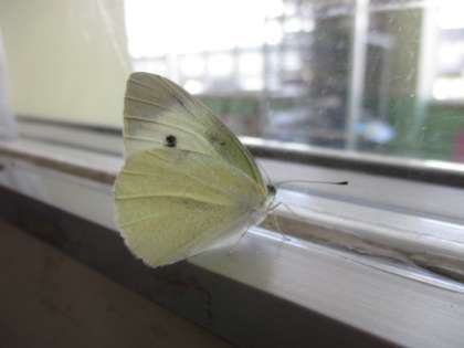ちょうどドアのガラスのところに止まったチョウ。