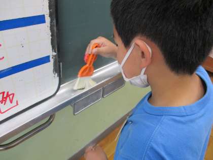 隅々まできれいにしようと頑張っています。自分の担当の場所を一生懸命行うことで,教室だけでなく心もきれいに磨かれていますね。