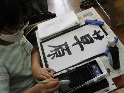 書写の学習で「草原」を書きました。草原での〜んびりしたいですね。