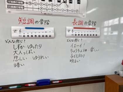 音楽の時間では,短調と長調の音階の感じのちがいを確かめました。