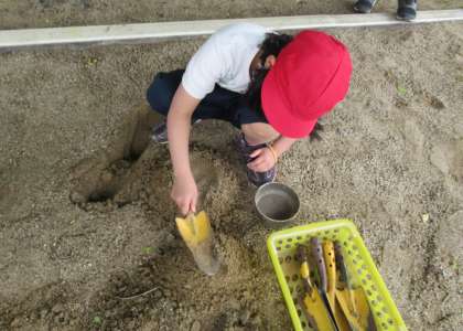 他にも,何度も何度も砂を掘って,大きな山を作っている人もいました。山の下の方にトンネルを作ろうと頑張っていました。また今度は他の形も作りたいですね。