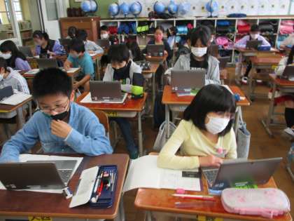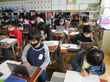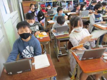 社会科の学習でタブレットを使って,日本の端にある4つ島のことを調べました。