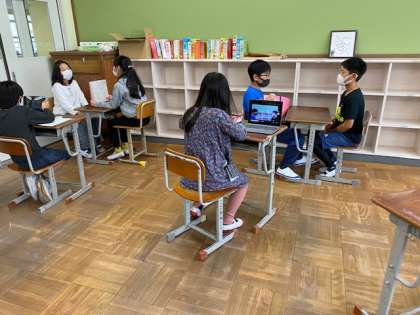 国語科「きいて,きいて,きいてみよう」では,3人組となって,