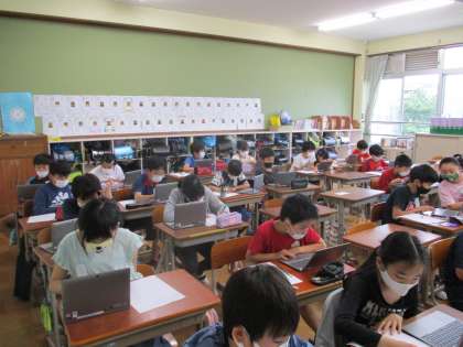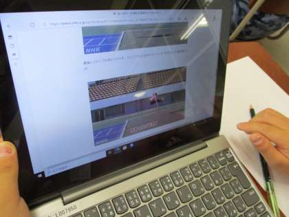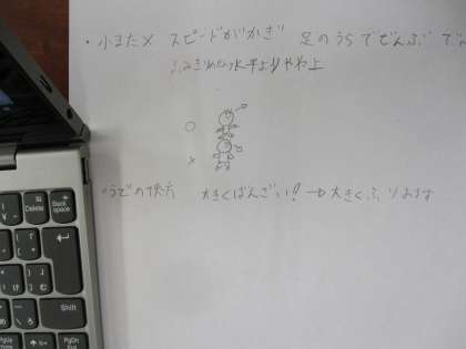 今日は雨だったので残念ながら走り幅跳びは中止…そこで,走り幅跳びのコツをタブレットで調べました。自分が調べたコツで次回,記録更新に挑戦します! 楽しみ〜