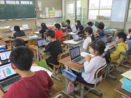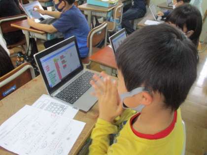 プログラミングでつくったリズムがきちんとできているか,手をたたきながら確認する子の姿も見られました。