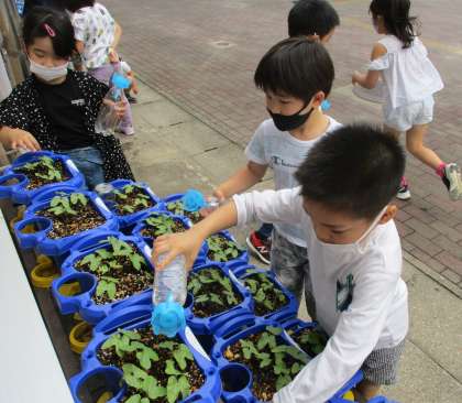 アサガオがどんどん大きくなっています。水やりもはりきっています。