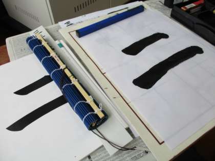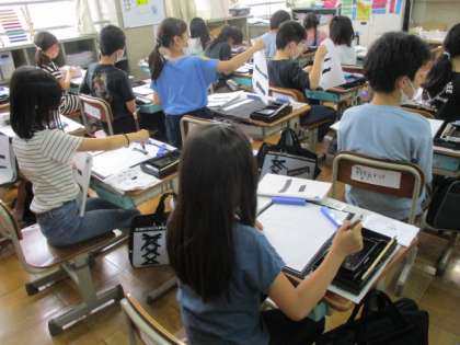 3年生になって,2回目の毛筆の学習です。横画の筆つがいの練習をしました。始筆の角度や穂先の動きに気を付けながら,ていねいに書きました。