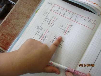 今日は,いろいろなたしざんのひっ算でした。