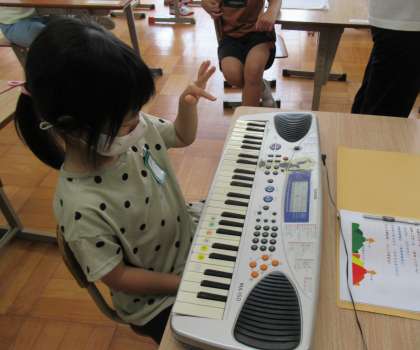 その他にも,キーボードを使って「どんぐりさんのお家」の演奏をしました。