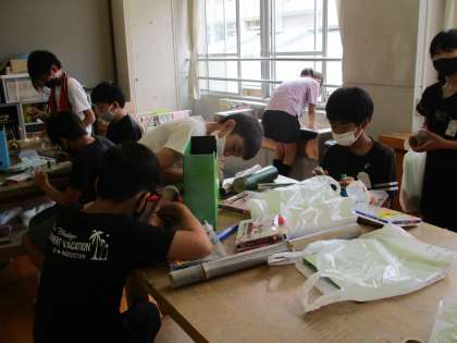 総合的な学習の時間で行っている竹の学習では,少しずつ竹を使って作ったものが完成してきました。